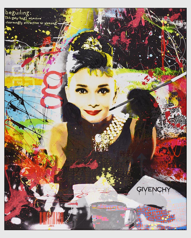 “BEGUILING” 33 by 40 inches, acrylic - mixed media & GD on canvas mounted to hardpanel coated in resin (2020)