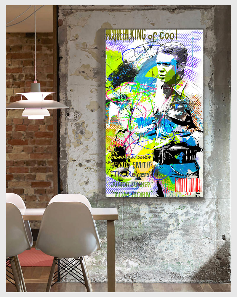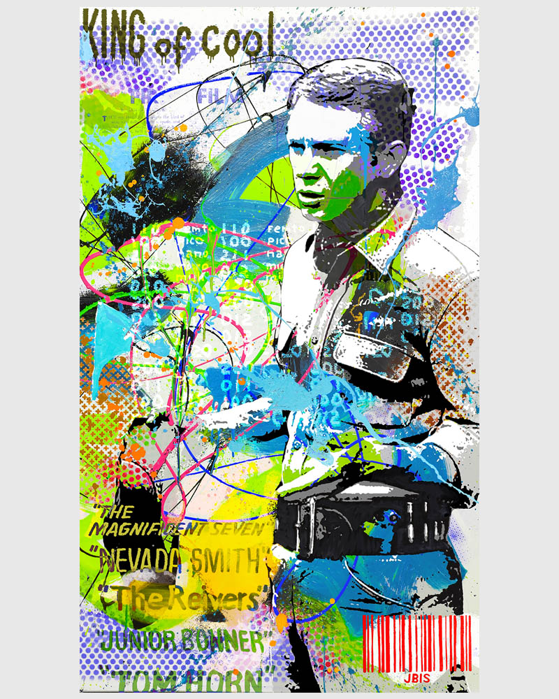 “KING OF COOL” 28 by 48 inches, acrylic - mixed media & GD on canvas mounted to hardpanel coated in resin (2020)